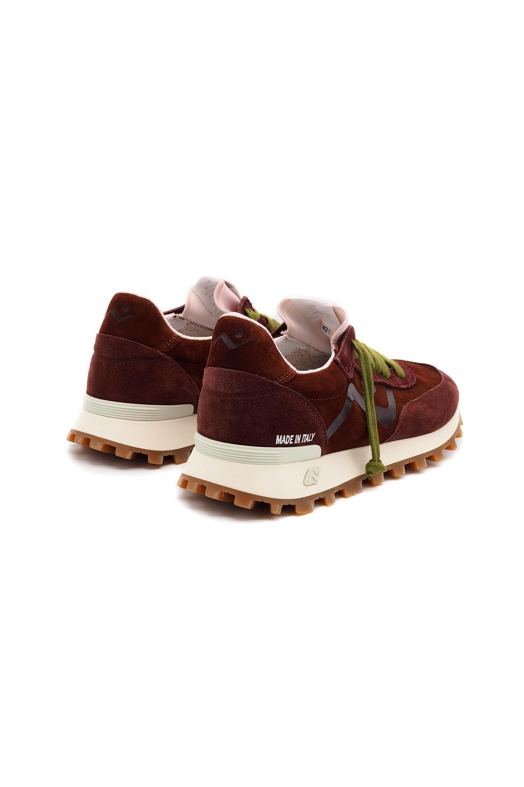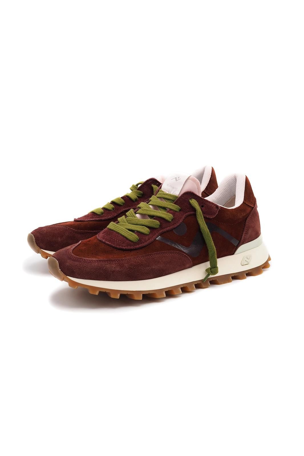 Le burgundy continue d'être une des tendances phares pour 2026. L'association avec les lacets de couleur pistache donne une allure moderne et tendance.