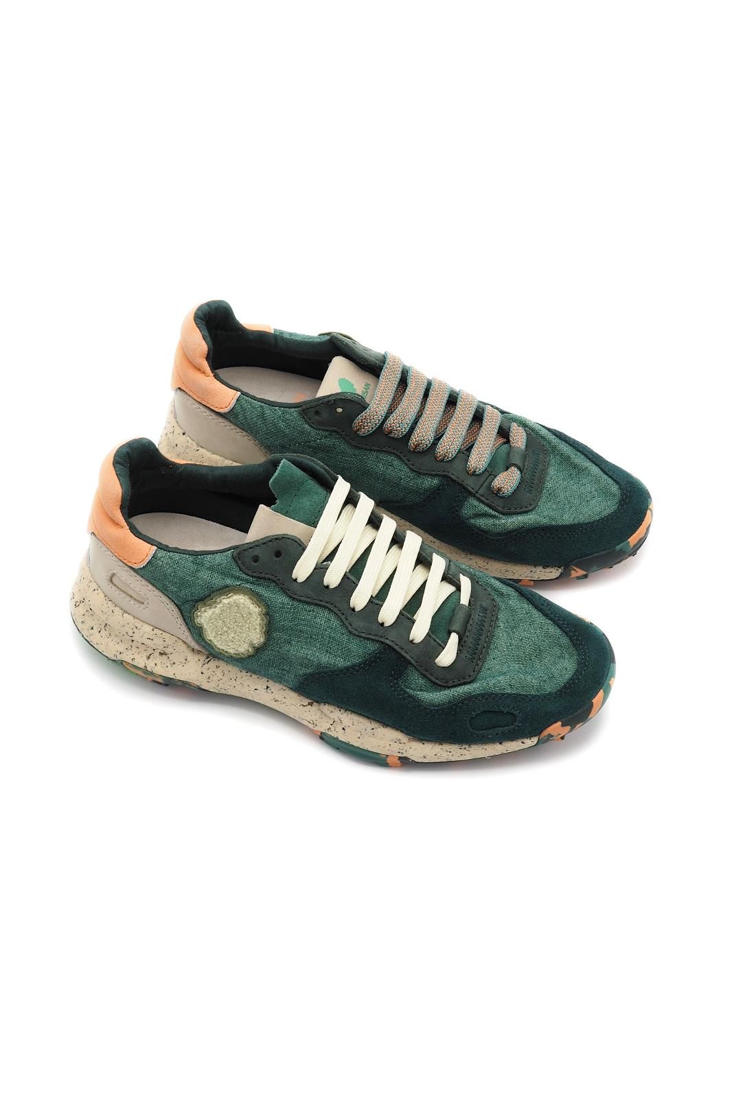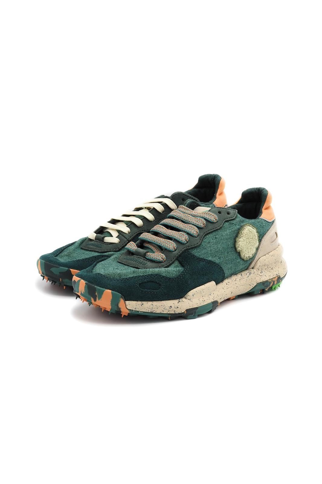 Cette paire de baskets vert profond avec des touches orange signée SATORISAN joue sur les contrastes avec caractère. À la fois confortable et singulière, elle dynamise vos looks sans en faire trop.