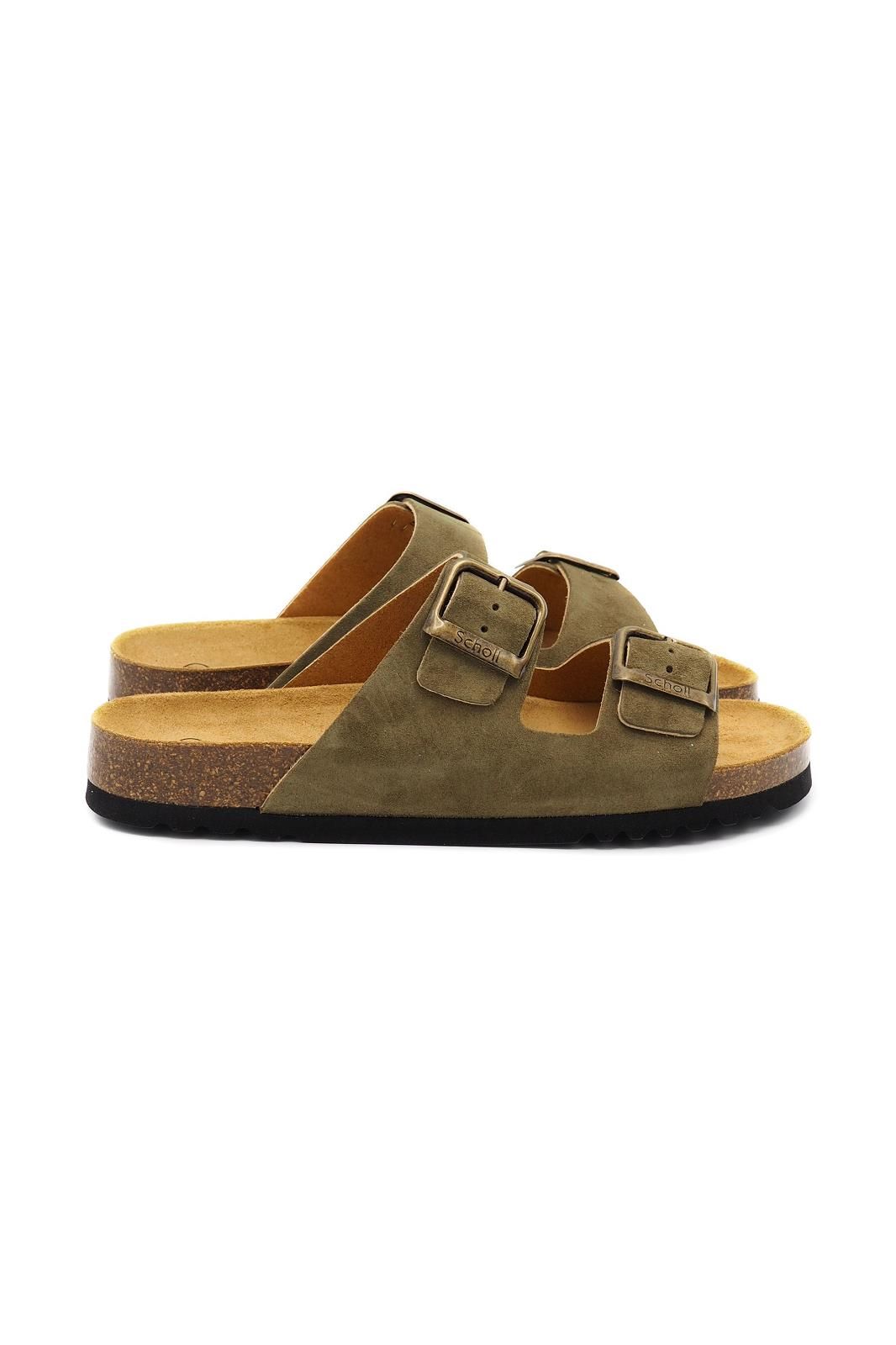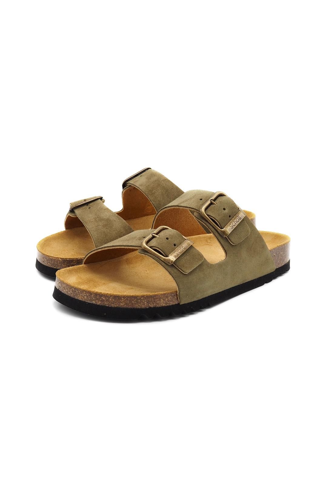 Mules double brides en nubuck kaki SCHOLL, au design sobre et élégant.