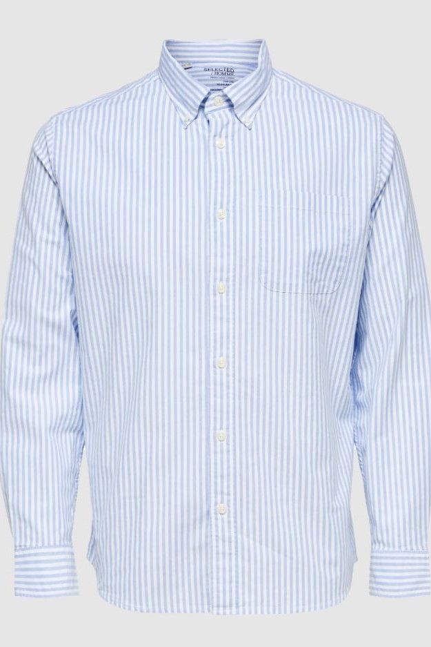 Chemise bleu ciel lignée droite col bout