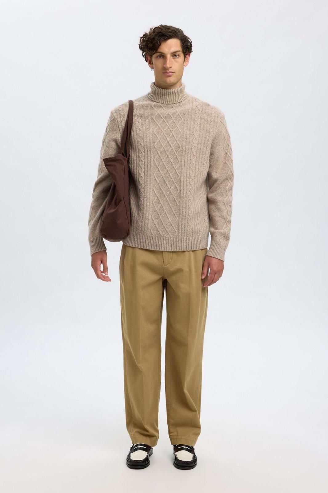 Pull col roulé beige Manches longues Coupe décontractée Composition: 80% laine certifiée, 20% nylon