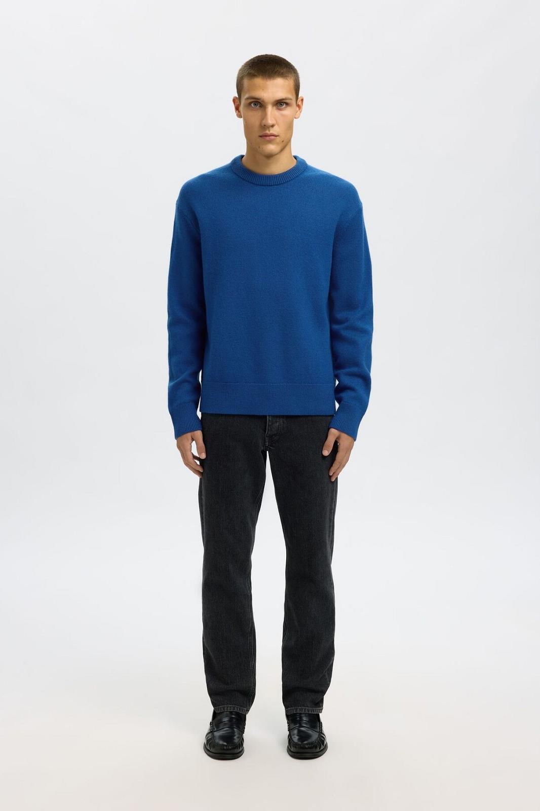 Pull bleu Coupe relax Manches longues Crew neck Composition: 100% laine certifiée