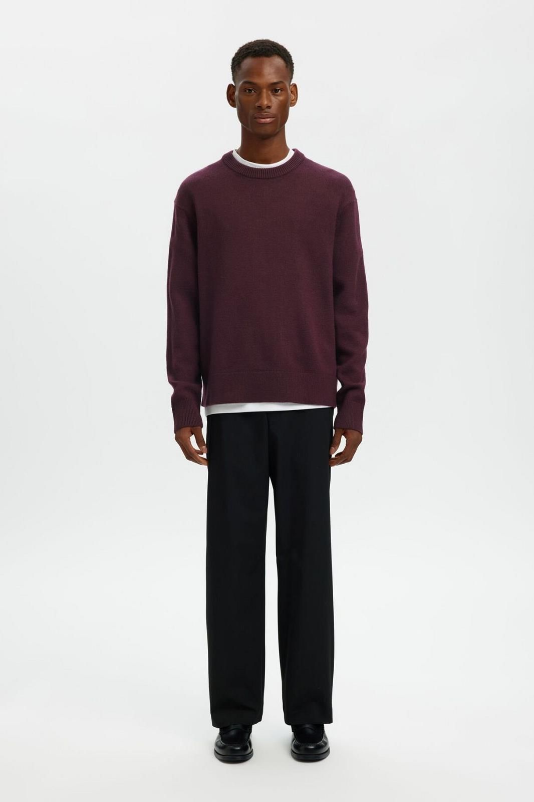 Pull lie-de-vin Col rond Manches longues Coupe décontractée Composition: 100% laine certifiée