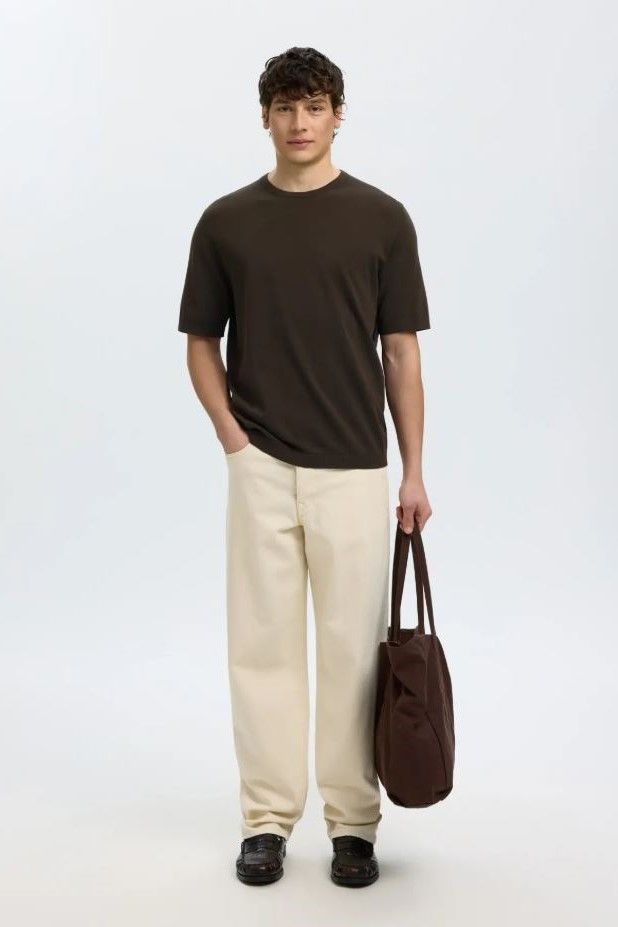 Nouveau Selected  Homme tee-Shirt Brun hommes (tshirt maille - TORINO chocolat) - Marine | Much more than shoes