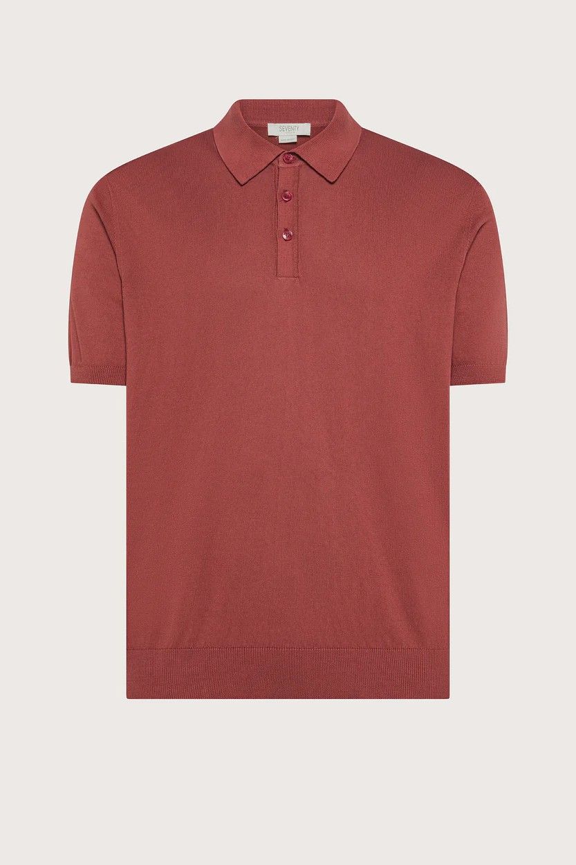 Polo couleur rouille de la marque SEVENTY. Sa couleur et sa matière de qualité en font une pièce originale mais intemporelle. Il se porte sur un pantalon brun ou beige mais également sur un jeans. Il illuminera votre teint directement !