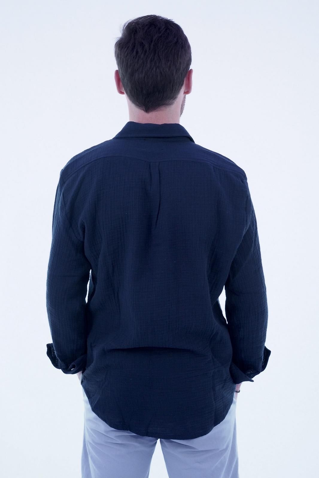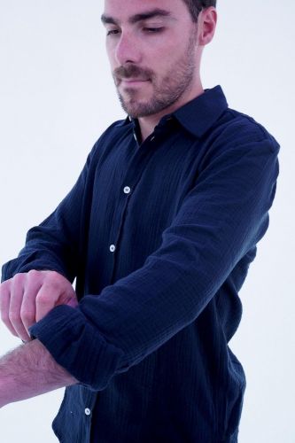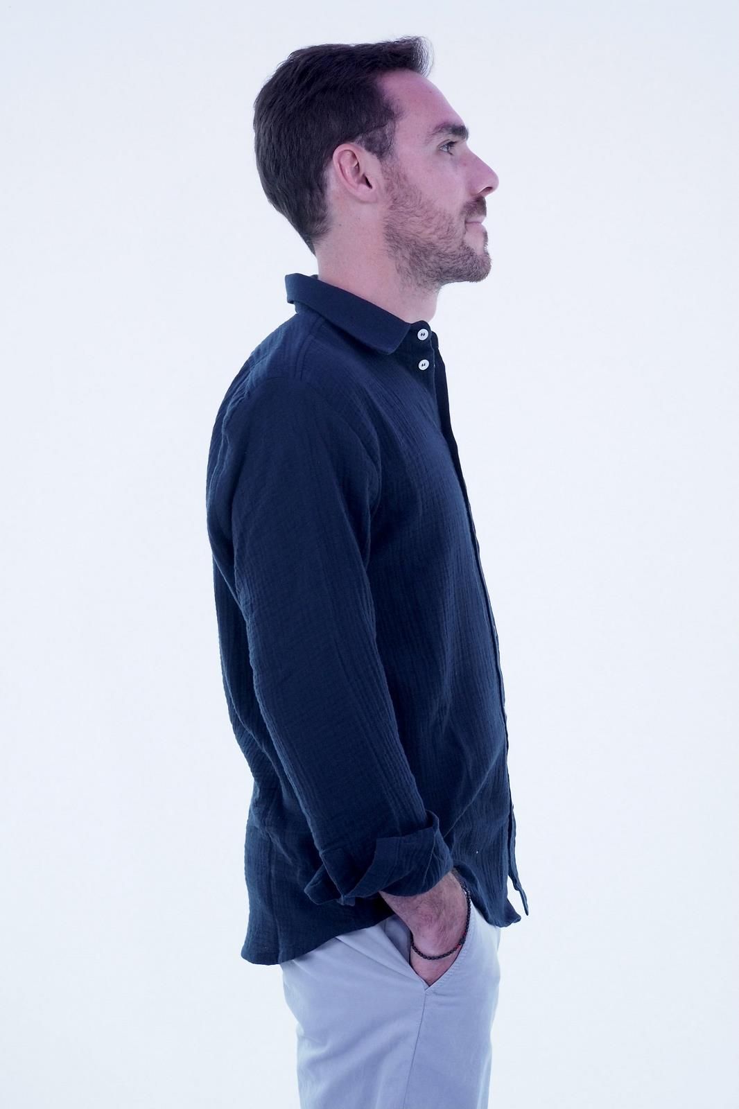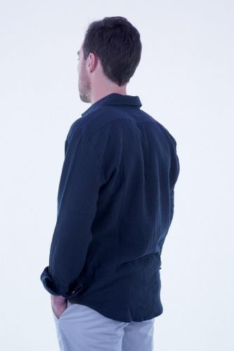 Chemise en gaze de coton bleu marine